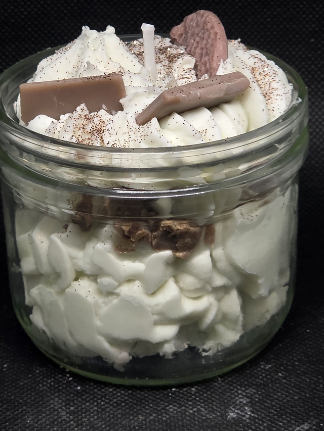 Laissez-vous tenter par la bougie gourmande Choco-Trésor de Bougies d'Auvergne. Une création artisanale au parfum irrésistible de cookie chocolat, présentée dans un élégant bocal en verre avec une texture "chantilly" et des décors chocolatés plus vrais que nature.