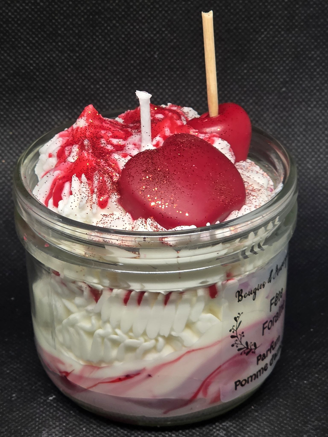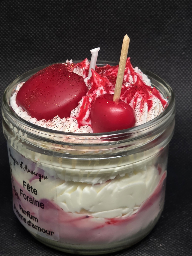 Laissez-vous transporter par la magie des fêtes foraines avec cette bougie gourmande artisanale aux notes sucrées de pomme d'amour. Présentée dans son bocal en verre avec une chantilly de cire onctueuse, elle allie plaisir visuel et olfactif pour une ambiance chaleureuse et réconfortante.