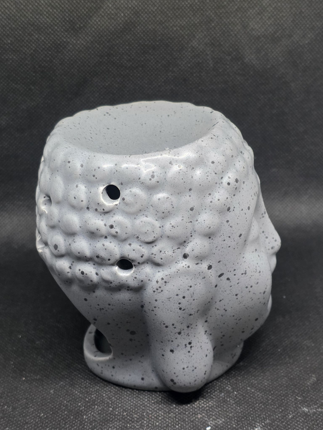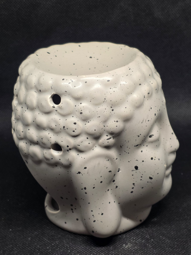 Brûle-parfum Bouddha – Sable Moucheté > Créez votre propre sanctuaire de paix. Déposez vos cires parfumées ou huiles essentielles dans le creux supérieur et laissez la lumière des bougies sublimer les détails de cette pièce artisanale.