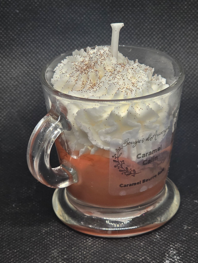 * Design : Une base couleur caramel surmontée d'une chantilly de cire aérienne parsemée de fines paillettes.