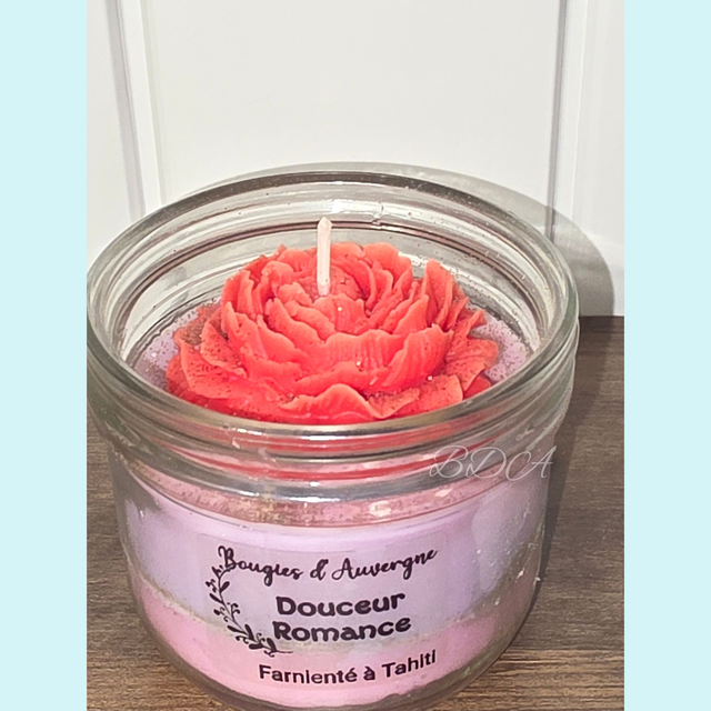 Laissez-vous transporter par le parfum envoûtant de farnienté à Tahiti avec cette création unique de Bougies d'Auvergne ! 🌺 Faite avec amour, cette bougie est ornée d'une sublime fleur de pivoine rouge et de délicates paillettes. Un véritable plaisir pour les sens et un cadeau parfait.