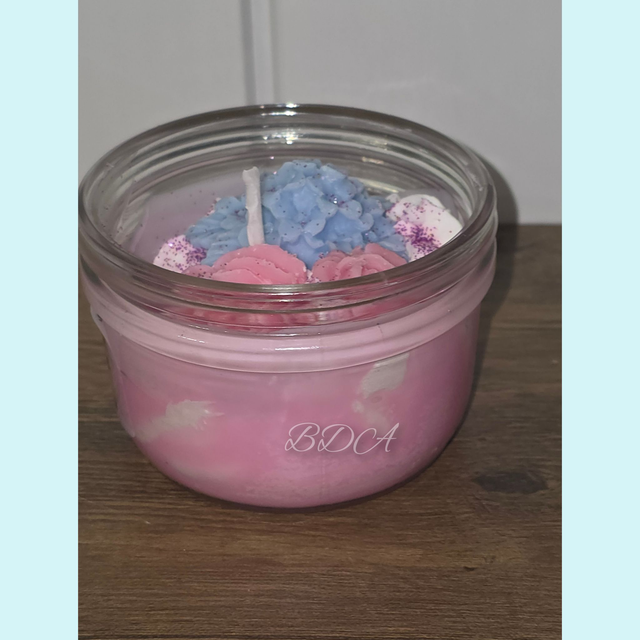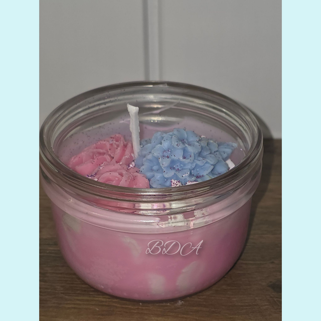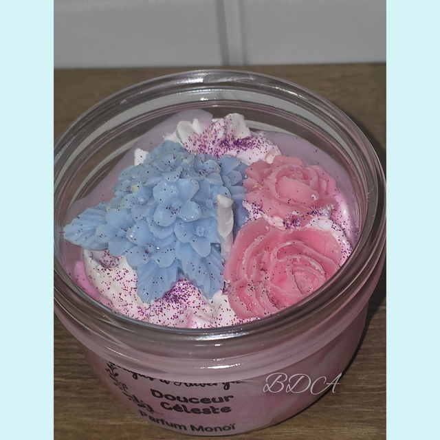 Cette bougie unique se distingue par son décor délicat de fleurs bleues et roses parsemées de paillettes, ajoutant une touche de magie et de raffinement à n'importe quelle pièce. Parfaite pour créer une ambiance relaxante ou pour offrir un cadeau mémorable, la bougie Douceur Céleste est plus qu'un simple objet de décoration, c'est une invitation au bien-être.