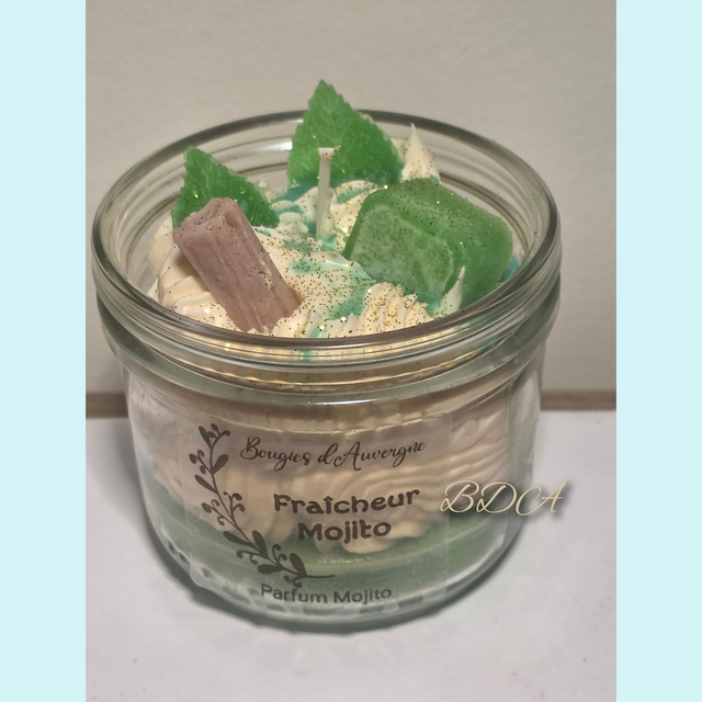 Plongez dans l'ambiance estivale avec notre bougie artisanale "Fraîcheur Mojito", une création unique qui éveillera tous vos sens. Fabriquée avec soin dans un pot en verre réutilisable, cette bougie est bien plus qu'une simple source de lumière : c'est une véritable œuvre d'art olfactive et visuelle.