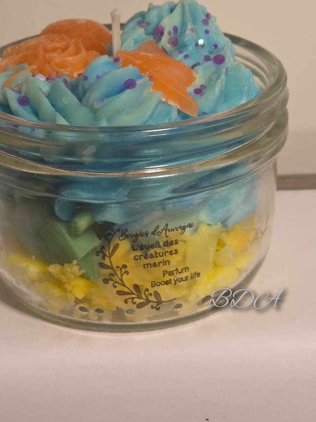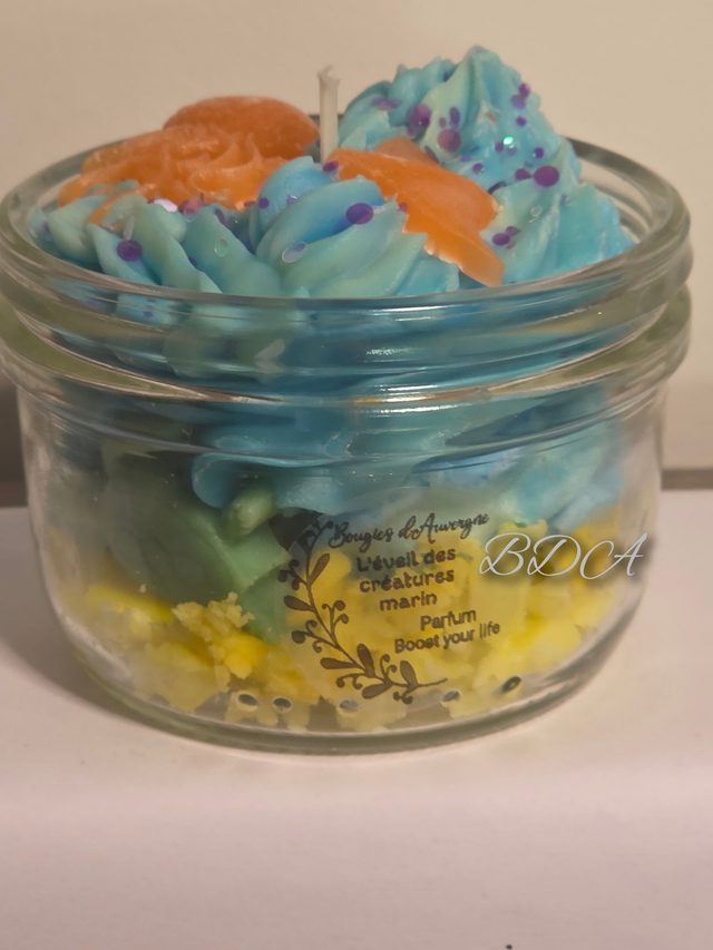 "L'océan en bocal... 💙💚💛 Laissez-vous transporter par les vagues et les créatures de la mer avec cette magnifique bougie Bougies d'Auvergne. Un parfum qui éveille les sens et illumine l'âme.