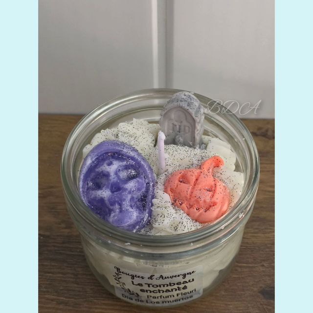 Inspirée par la magie du Dia de los Muertos, cette bougie parfumée vous invite à un voyage olfactif unique. Son parfum fleuri, à la fois délicat et envoûtant, transforme n'importe quel espace en un jardin secret où les souvenirs et la nature s'entremêlent. Chaque bougie est une œuvre d'art : son design unique, avec ses couleurs douces et son petit tombeau miniature, est un clin d'œil poétique à la vie et à son cycle éternel.